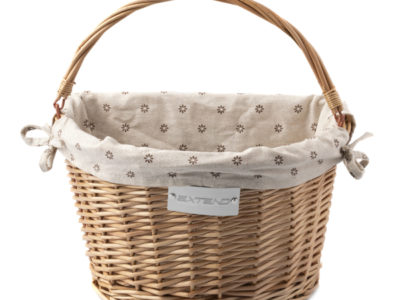 Přední košík Extend Credo s rychloupínacím držákem a látkovou výplní s květinovým motivem.
